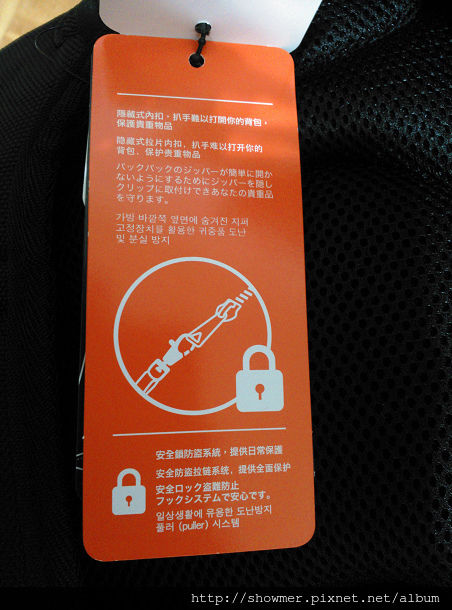 實際上試用的結果,背在肩膀上如果有人要開背包的話一定會有感覺~~